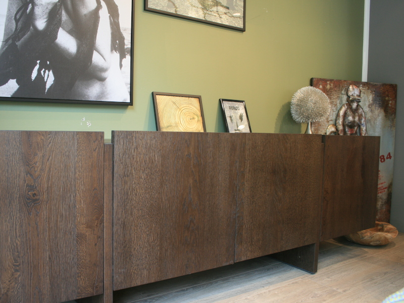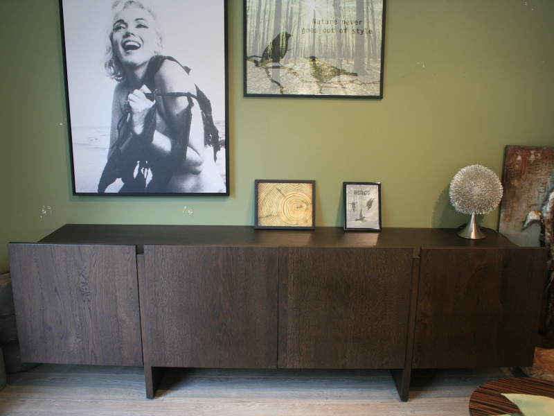 Credenza 4 ante, frontali rovere antico terra scocca interna pelle senape opaco
