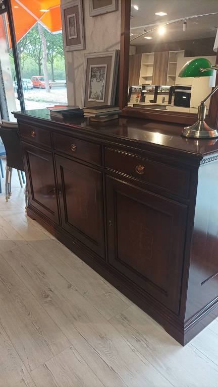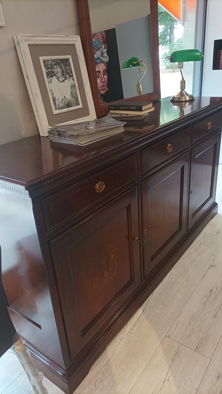 Credenza composta da 3 ante con serratura dorata e 3 cassetti con maniglia.