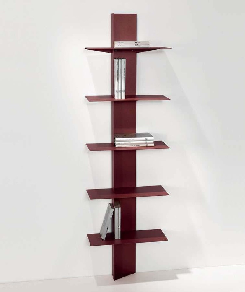 Libreria da parete realizzata con ripiani in alluminio e colonna in acciaio verniciato.