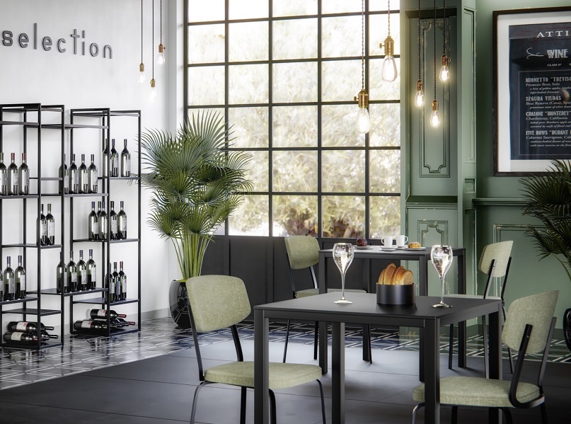 Sedia impilabile con struttura in acciaio,