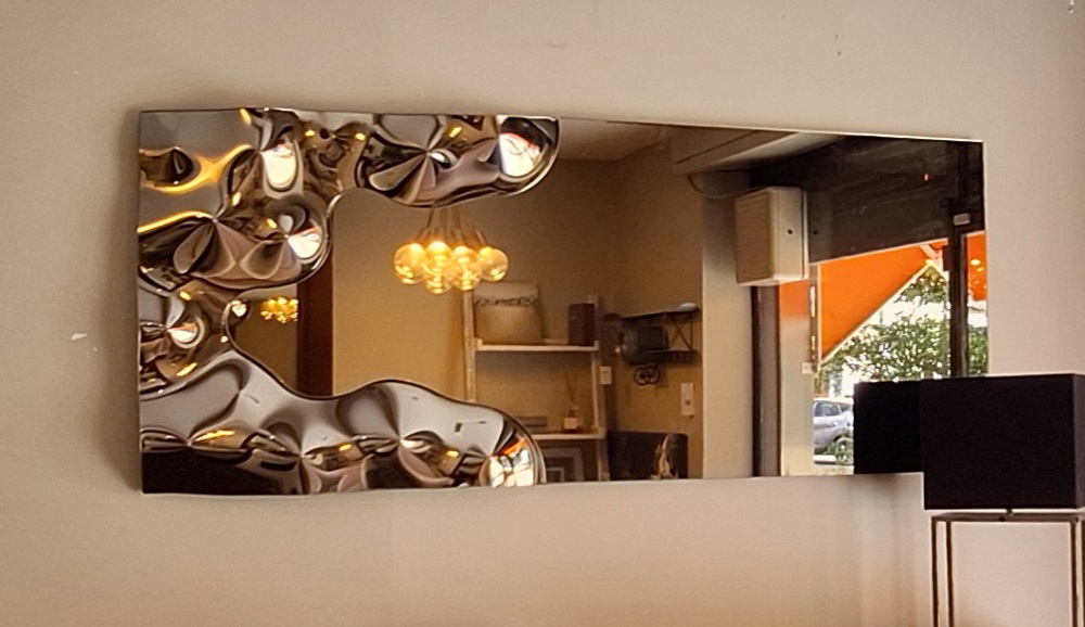 Nello specchio Andromeda la tridimensionalità scultorea irrompe nello spazio impreziosendolo di affascinanti bagliori.